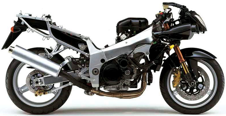 フレームもツインスパーフレームで一緒だし、ゴツイ所以外は2000年初期のGSX-R1000にそっくりです。
