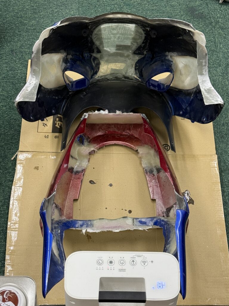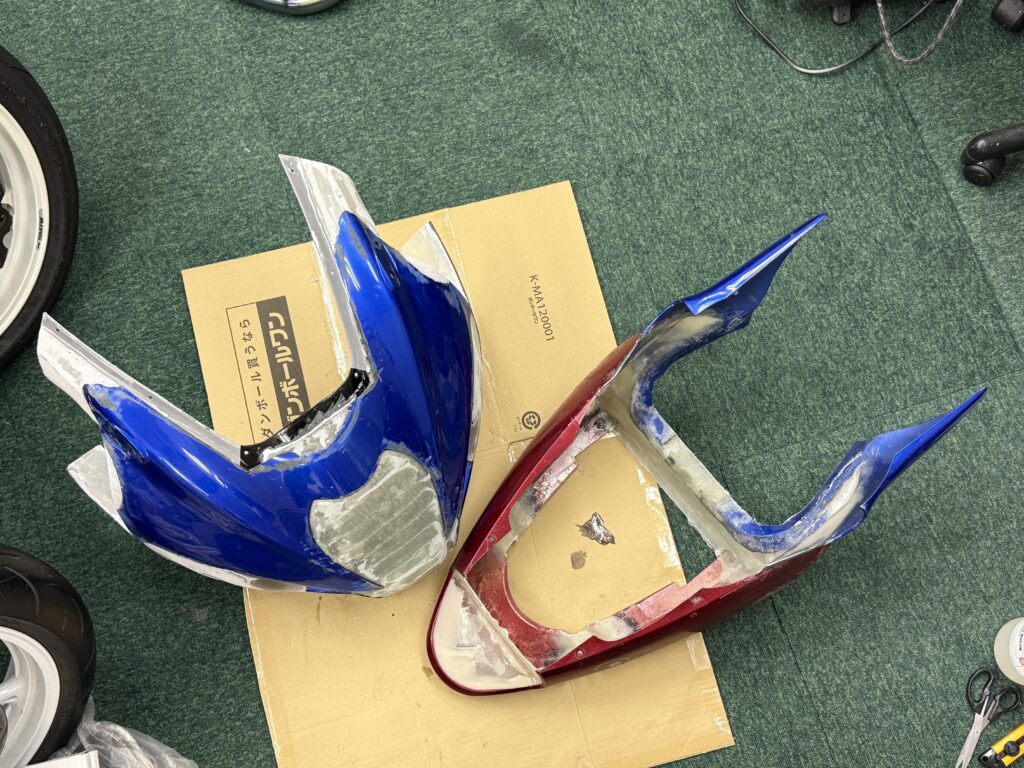 でも、これをこのまま使うのではなく、明確なエッジを立て形状も少し変更し、サイドカウルとの繋がりを演出しようと考えています。