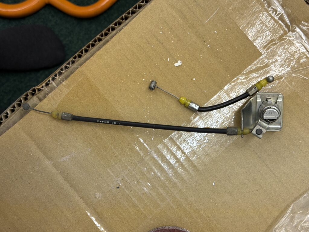 純正シートを分解したら、シートロックワイヤーが極端に短かったHayabusaは、キーシリンダーの移設自由度がかなり限られてしまう(と言うか移動不可能)ので、ワイヤー交換へと踏み切りました。