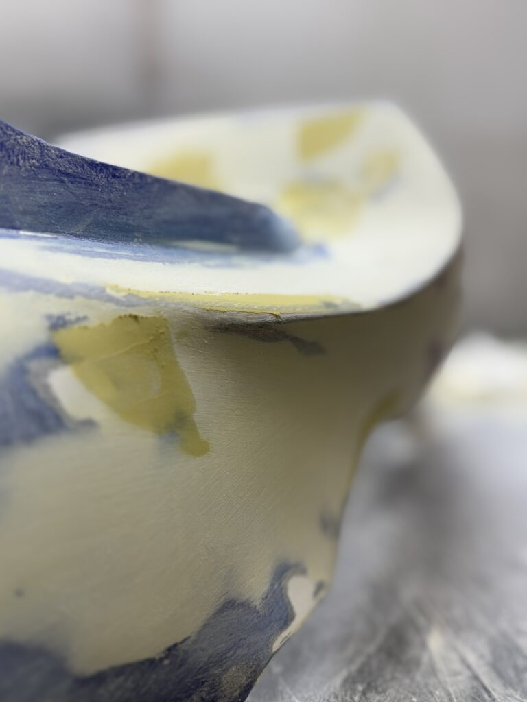 完全硬化前に、良く着れるカッターで荒く不要部分を落としておきます。