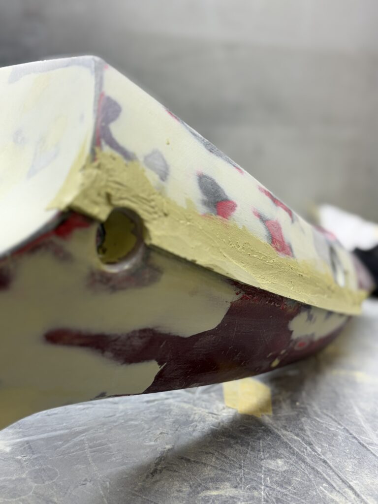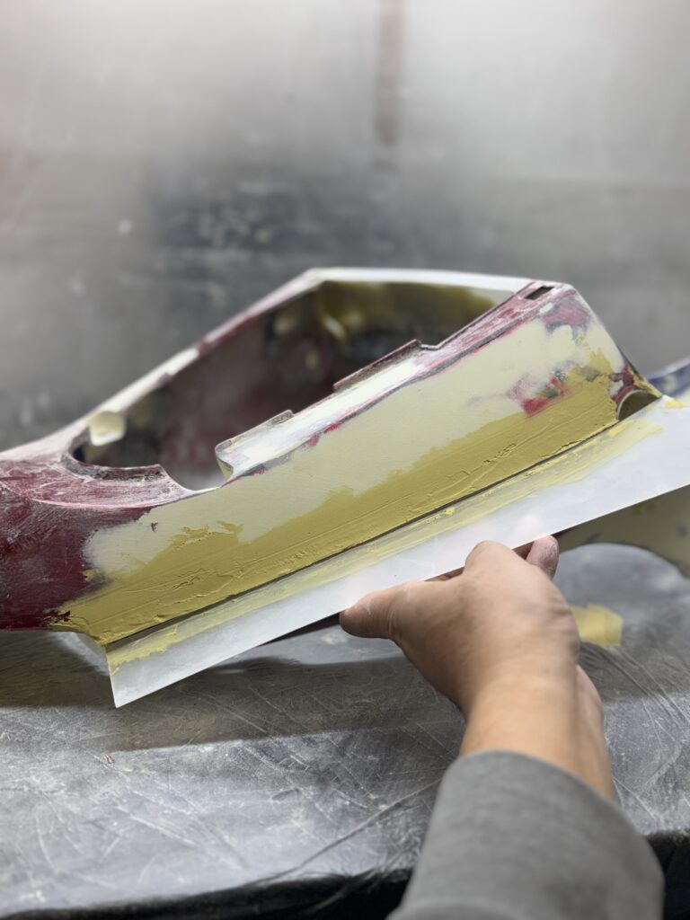 ラクーダパテは板金時の肉盛りに優れ、且つ砥ぎやすく、3kgで買うとエローまでついてくるので、なんだかんだ言ってコスパ最強の最高のパテです。